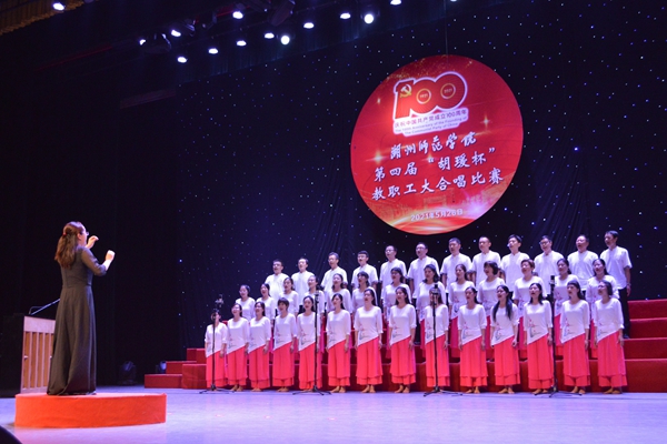 本届“胡瑗杯”教职工大合唱比赛由党委宣传部、校工会主办,校团委、艺术学院协办。在中国共产党成立100周年之际,各代表队师生通过经典红歌比赛,热情讴歌100年来党的奋斗历程和辉煌成就,引导广大教职工坚定不移听党话,跟党走,用实际行动践行初心使命,助推党史学习教育不断走深走实。凝聚广大教职工,聚焦立德树人,聚力协同创新,为创建高水平“湖州师范大学“接续奋斗。